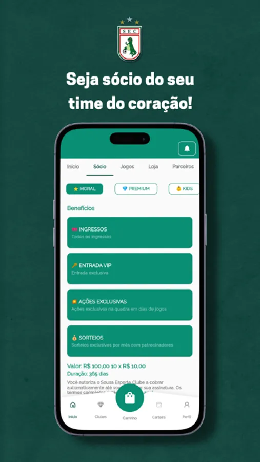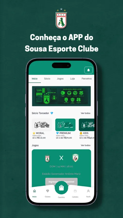 No APP do Sousa Esporte Clube, você acompanha as notícias do clube, garante produtos oficiais e ingressos para os jogos, além de se tornar sócio torcedor obtendo acesso a rede de benefícios e promoções exclusivas.