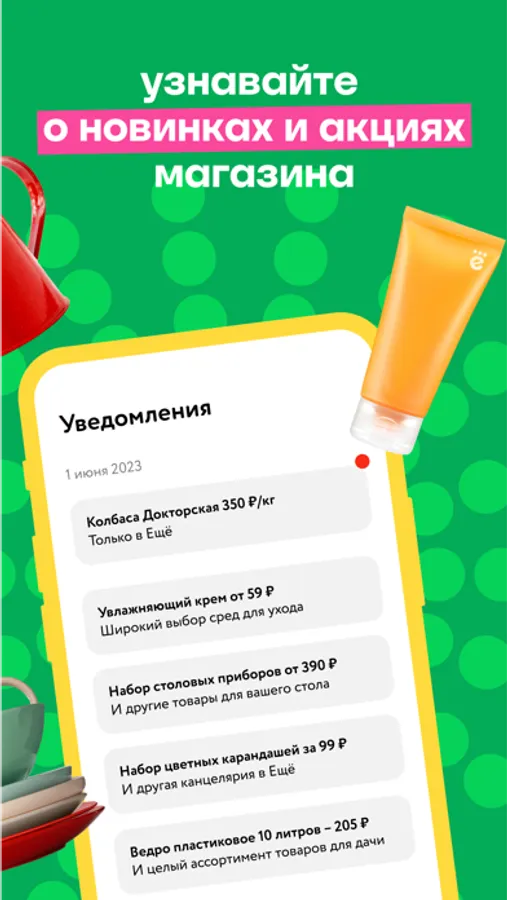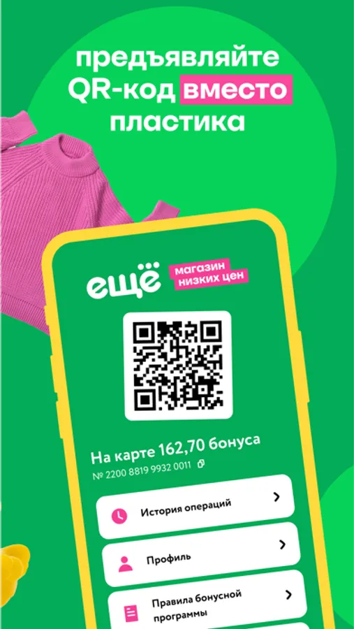 Официальное мобильное приложение магазина «Ещё» — вашего надежного партнера для выгодных покупок! У нас вы найдете широкий ассортимент товаров по самым низким ценам, а это приложение поможет вам в магазине.