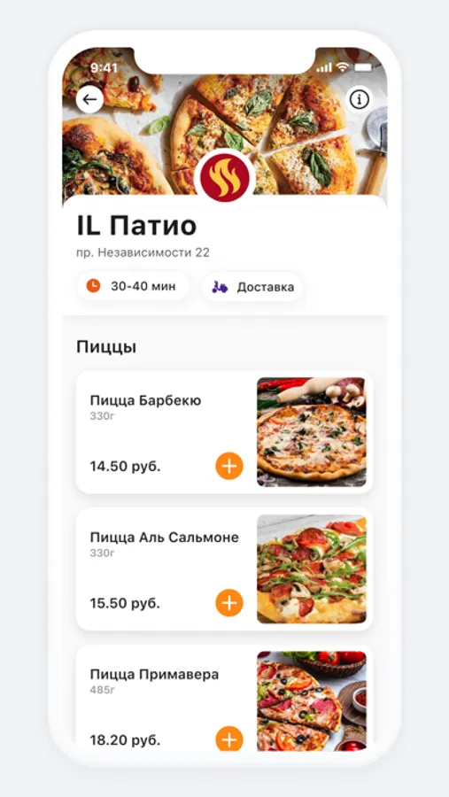 Просто введите свой адрес, и мы сформируем для вас доступное меню из ресторанов «IL Патио», TGI FRIDAYS™, «Шикари», «Планета Суши», «Свои»