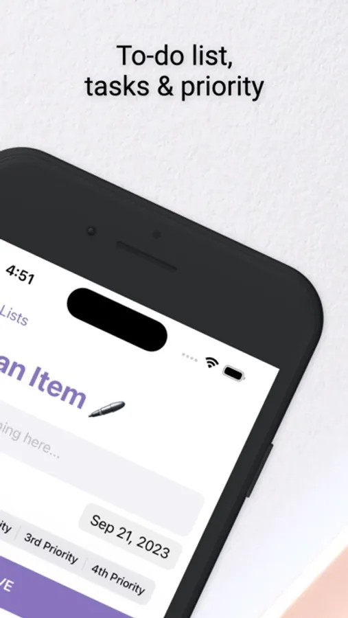 Task Lists empowers you to take control of your daily tasks with ease. Effortlessly manage and organize your to-do list, delete tasks intuitively, edit them with a simple touch, rearrange tasks based on your preferences, and assign priorities to stay focused. Download Task Lists now and experience the ultimate convenience in task management!