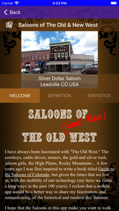 Saloons of the Old and New West - also includes whiskey bars, Ghost Towns, and Haunted places