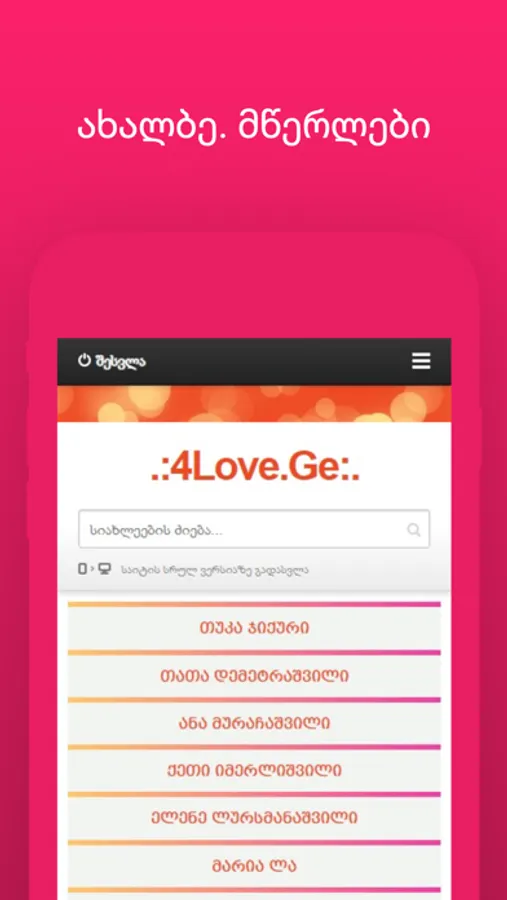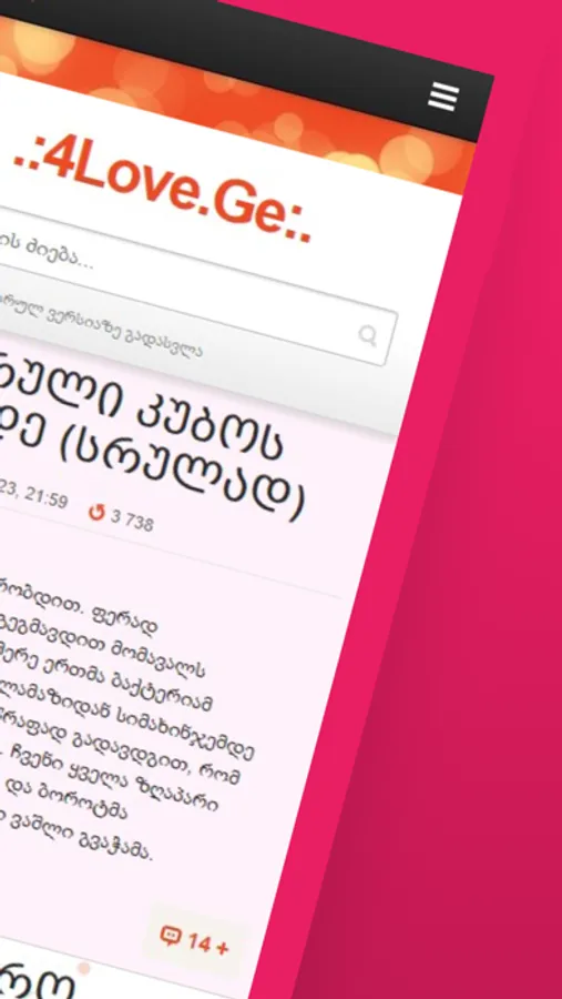 4LOVE.GE is a love site that offers love stories, sketches, poems, and other content. 90% of the news added to 4LOVE.GE is unique news written by the user personally.