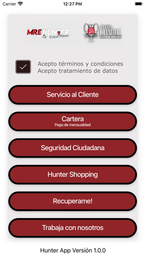 1. Servicio al cliente: a través de este enlace nuestros clientes serán asistidos por el personal de Mre Hunter y Punto Charlie Central de Monitoreo, a través del cual darán respuesta a las solicitudes relacionadas con el producto y/o servicio.