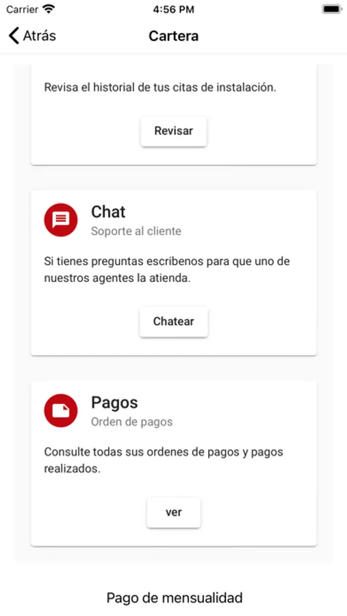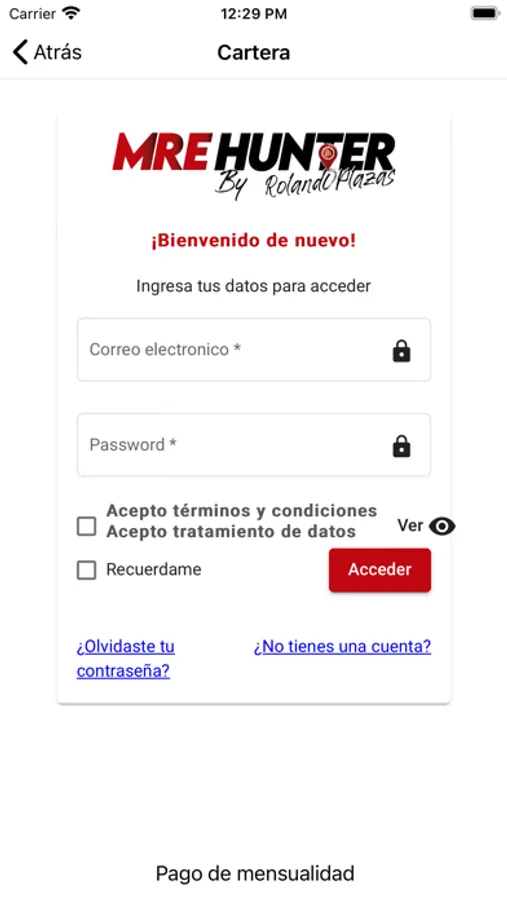 2. Cartera: a través de este enlace los clientes podrán acceder a la aplicación mrehunter.app, en donde lograrán realizar el pago en línea de la mensualidad del GPS; además, visualizar el historial de pagos realizado, entre otras funcionalidades que se tienen disponibles.