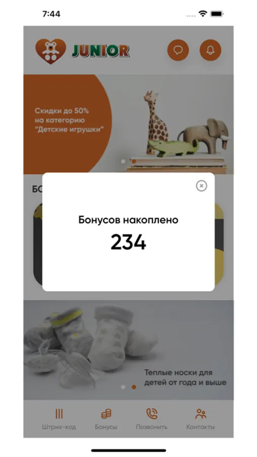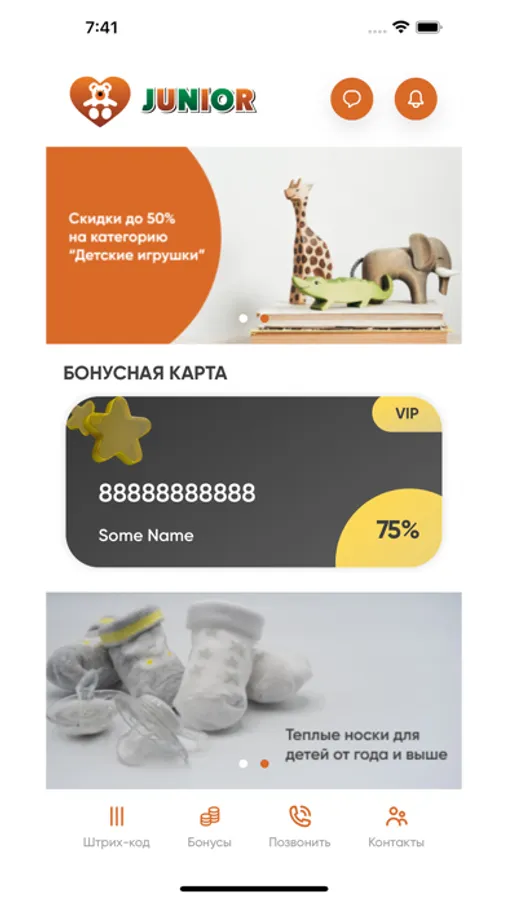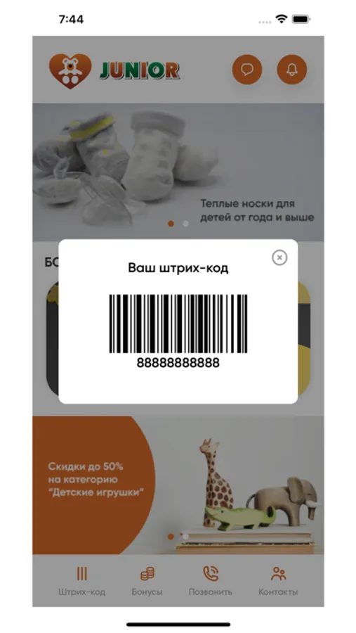 Дисконтная - Бонусная карта в Вашем телефоне. Дает постоянную скидку на товары в магазинах JUNIOR.