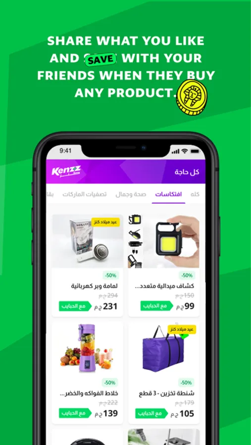 For the first time in Egypt and the Middle East, get ready for the ultimate shopping experience with "Kenzz"! It's time to turn your shopping experience into an adventure filled with Fun, excitement, and endless savings. Share with your family, friends, neighbors, and colleagues to unleash major savings on various products across all categories that match all tastes and preferences.