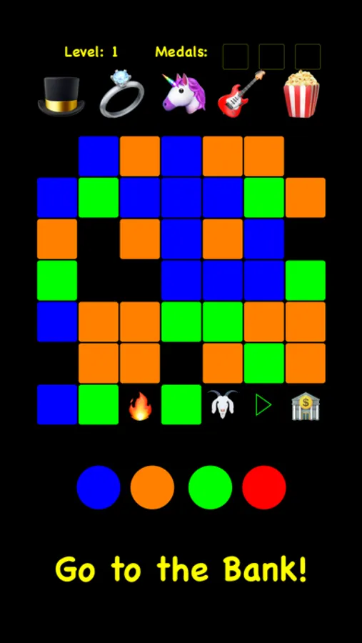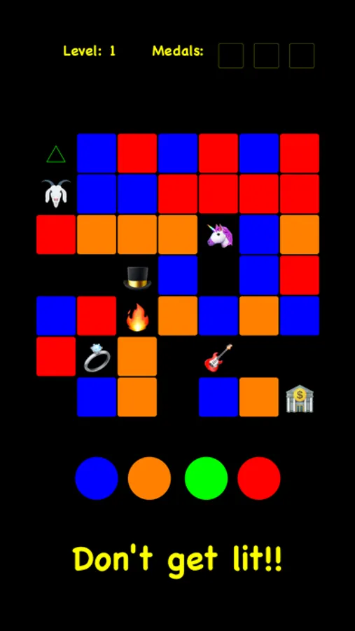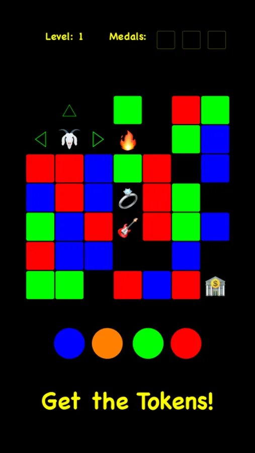 Capture all 5 tokens and take them to the bank without getting lit by the relentless flames. The gold medal is awarded at level 9. Good luck! You'll need it. Goat image by DinosoftLabs at flaticon.com. Sounds by Zapsplat.com.
