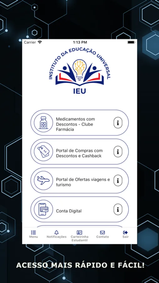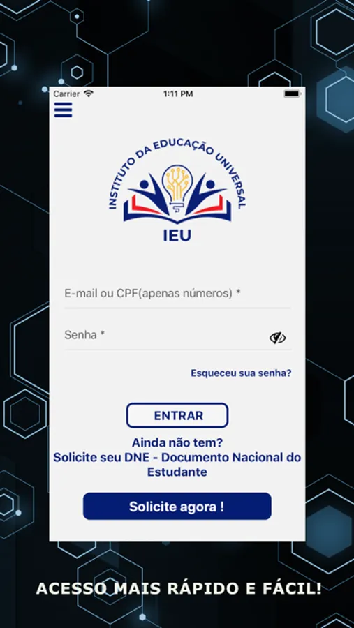 O IEU – Instituto da Educação Universal, é uma organização social, que atua em todo território nacional, na promoção da defesa dos interesses dos direitos dos estudantes, perante as instituições de educação, entidades representativas e demais foros do movimento estudantil, em consonância com as legislações vigentes. É emissor do DNE – Documento Nacional do Estudante, de acordo com a Lei da Meia-Entrada, Lei 12.933/2013.