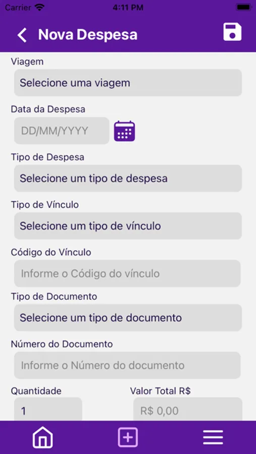 Registro as despesas de cada viagem com foto de cada recibo/comprovante de despesa.