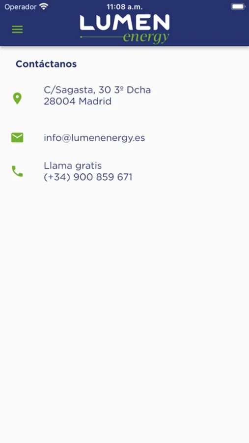 Lumen Energy, es una app gratuita, rápida e intuitiva donde siempre tendrás a mano la información tus contratos de luz, consultar y descargar tus facturas desde cualquier sitio, así como visualizar tu consumo mensual. También podrás acceder a nuestros canales de contacto.
