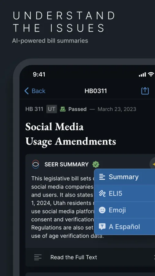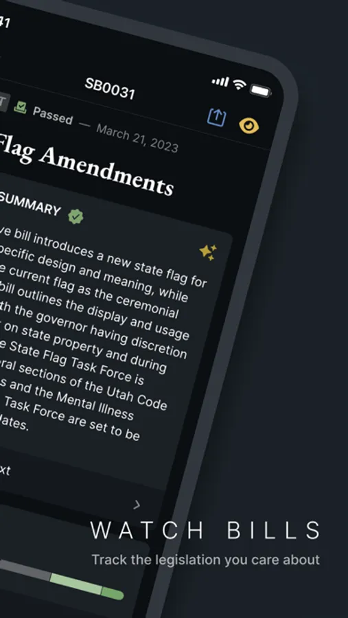 - View easy-to-read bill summaries and understand legislation in seconds.