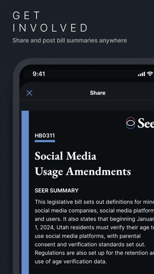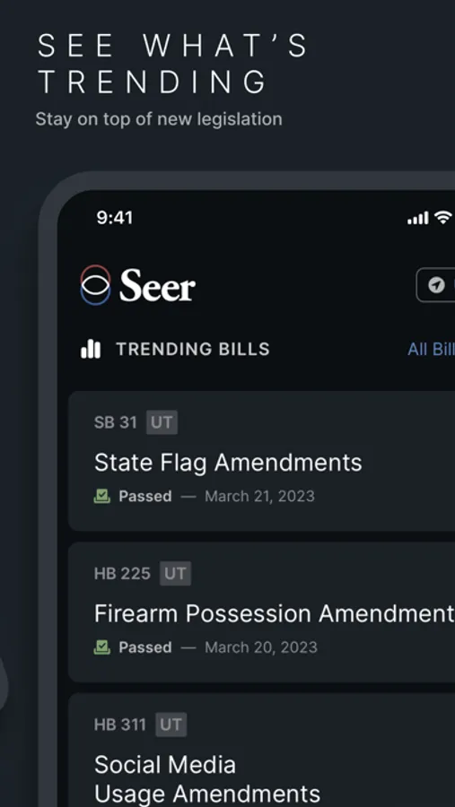 Get empowered and stay informed about the legislation that impacts you. Whether you’re new to the legislative process or a political powerhouse, Seer helps you understand and track legislative bills within a first-of-its-kind app.