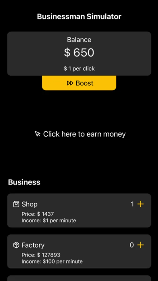 In this businessman simulator game, you take on the role of an entrepreneur starting from scratch and building a successful business empire. You'll need to make strategic decisions on finances, marketing, and operations, hire and manage employees, research and develop new products, and compete against other virtual businesses in the market. As you progress, you'll have access to new resources and technologies to help you grow and expand your business. The ultimate goal is to become the most profitable and influential business tycoon in the virtual world.