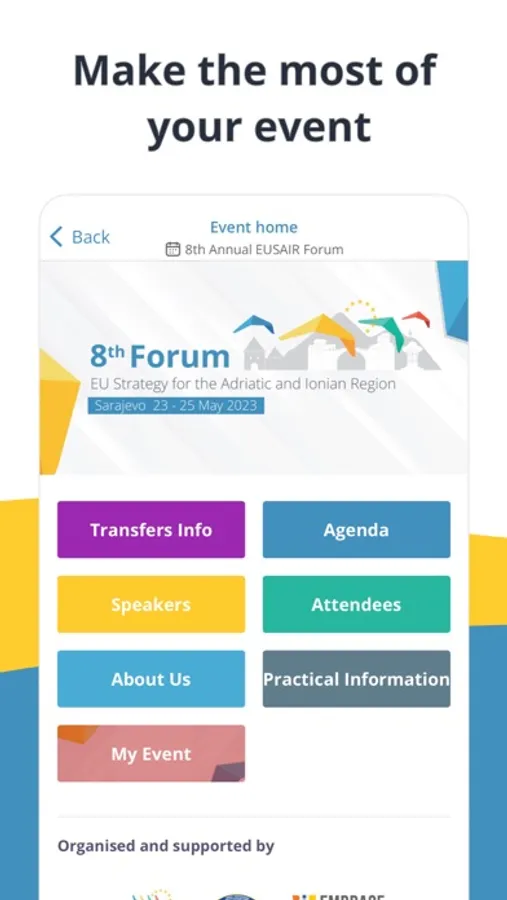 The official app of the 8th Forum of the EU Strategy for the Adriatic and Ionian Region (EURAIR Forum) is intended for registered participants and offers information about the schedule, venues, participants and speakers of the Forum, as well as other necessary information for your pleasant stay in Sarajevo.