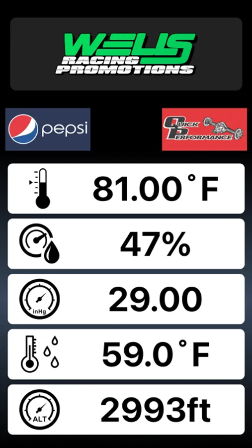The app shows the weather station information and calculate the Density Altitude automatically to help the racers to tune their engines before racing. A first in the industry.