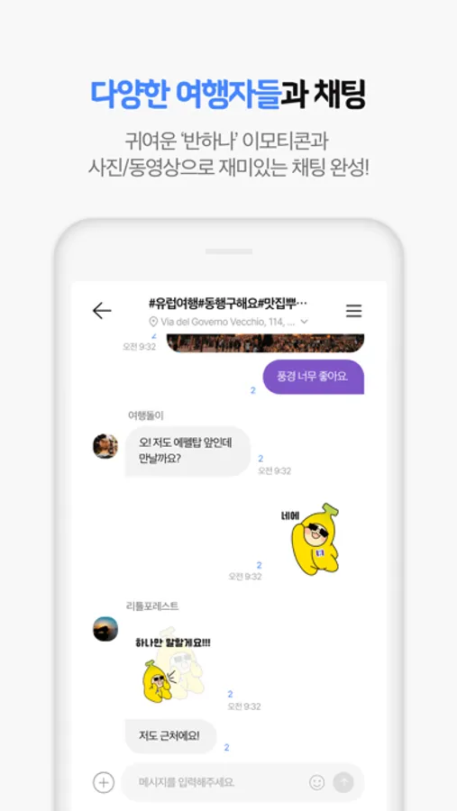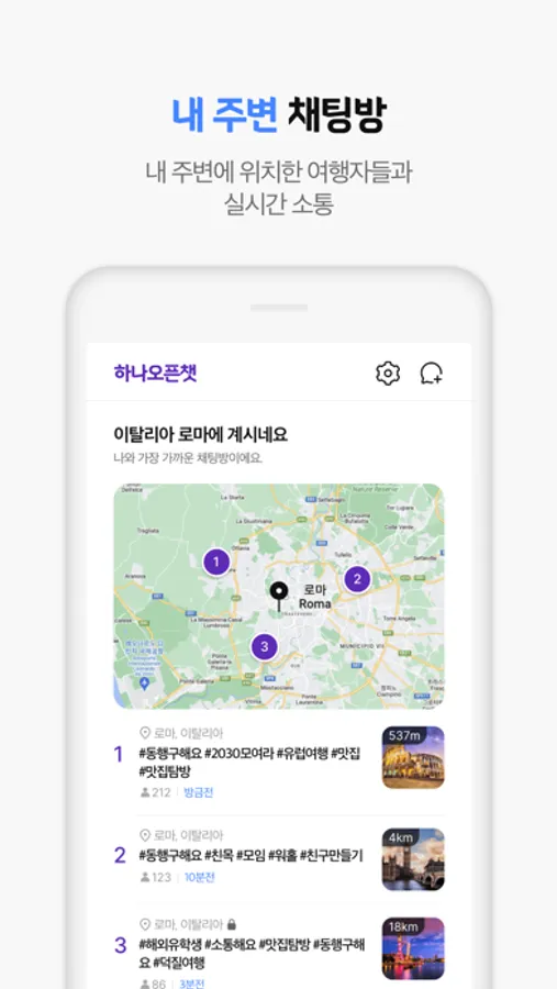 내 주변에 위치한 여행자들과 실시간 소통을 통해 다양한 정보를 나누어 보세요.