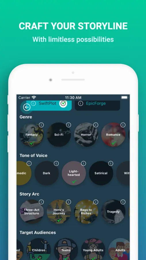 DIRECT your own narrative by customizing the genre, arc, characters, and number of chapters. Want to craft a noir detective story set in outer space? Or a high school romance between a vampire and a werewolf who are secretly food critics? Your wish is our command!