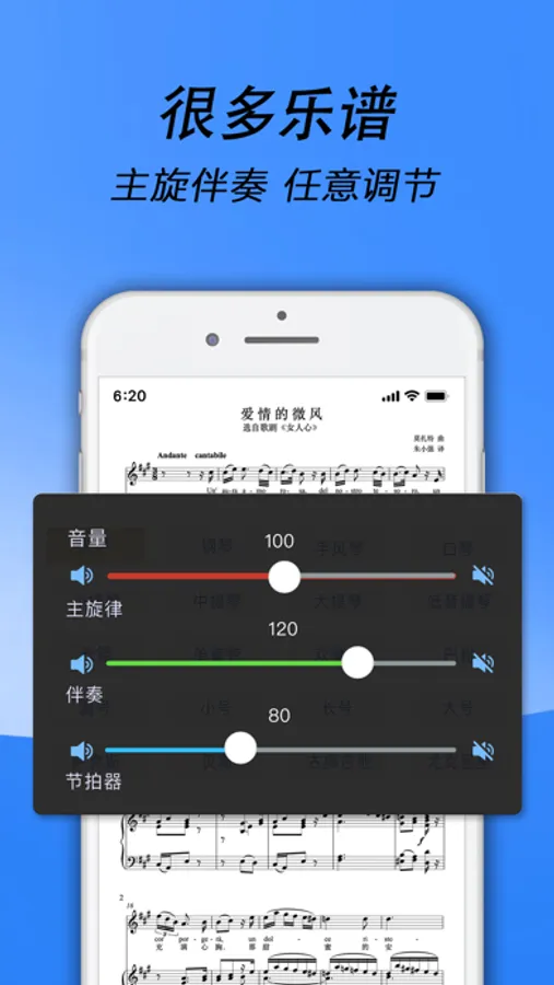 乐谱播放器,高音质的音频播放效果,为初学作品提供良好的辅助。