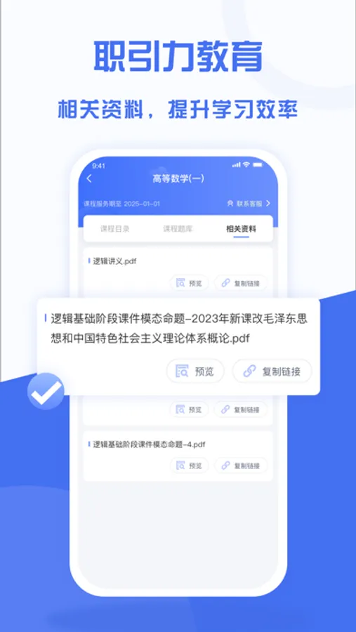 职引力教育是一款综合型的学习平台,随时随地听课,补充知识储备,让你遇到更大的可能。