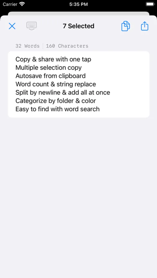 - One tap to copy & share