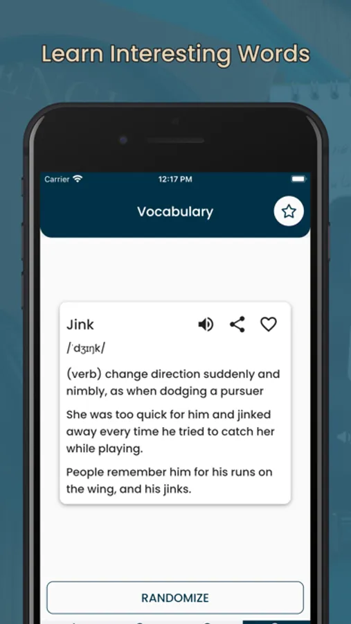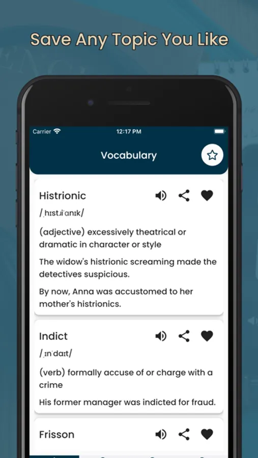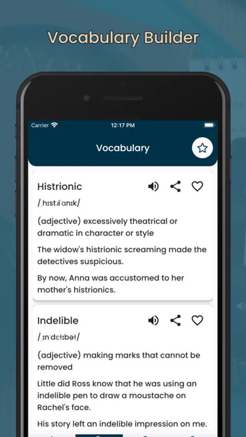The Vocabulary Builder app is a mobile application designed to help individuals improve their vocabulary and expand their knowledge of the English language. The app provides users with a range of words and their definitions, along with examples of how the words can be used in context.