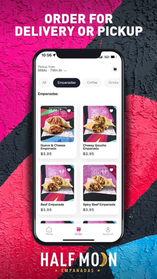 Customize and place your order, then collect from a nearby Half Moon Empanadas store without waiting in line. Speed things up with our quick reorder feature.