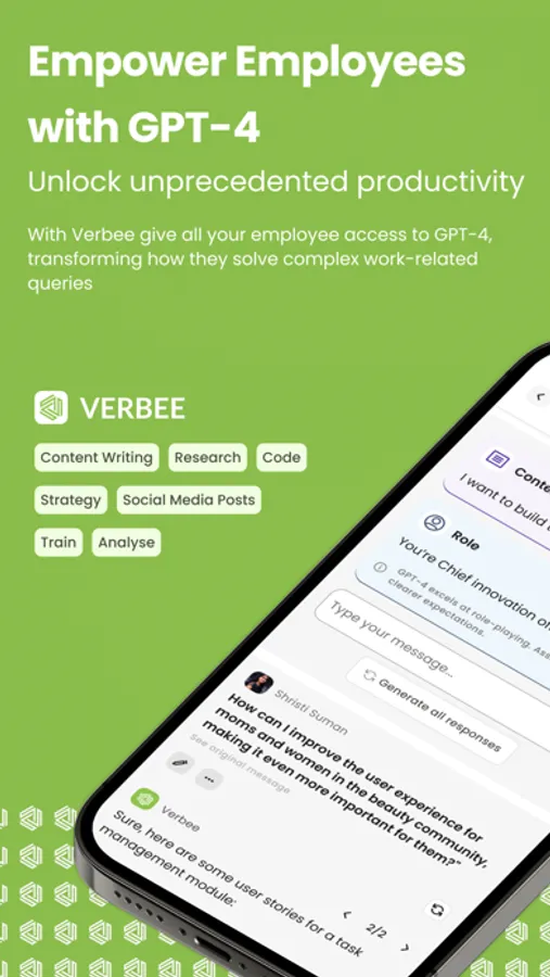 Download Verbee now and take the first step towards revolutionizing your organization with the power of GPT-4.