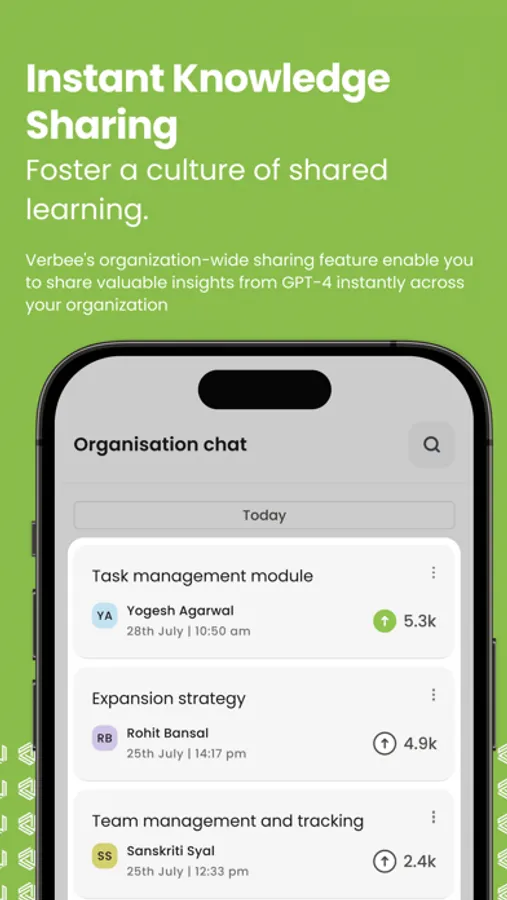 2. Enhanced Collaboration: Verbee promotes real-time chat sharing, organization-wide sharing, and collaboration, making learning more efficient and accessible for everyone. Collaborate with your peers and share valuable insights, ensuring that everyone stays on the same page.
