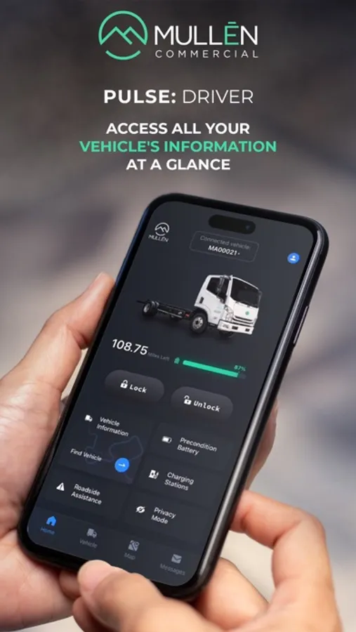 Mullen Automotive is committed to helping fleets improve cost savings, safety, training, productivity and emissions impact. Commercial Pulse provides managers and drivers a connected fleet of vehicles with maintenance alerts, real-time vehicle location, driver safety, battery state of charge, metrics and more.