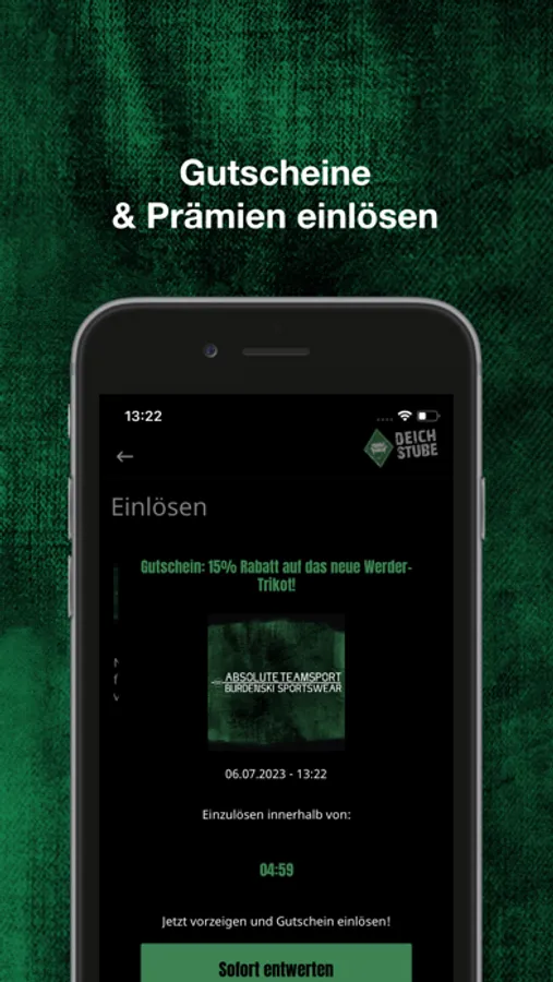 Doch damit nicht genug Mit dem DeichClub erhält der Nutzer ab sofort eine exklusive Vorteils- und Erlebniswelt, die alle Werder-Fans noch glücklicher machen kann. Die Nutzer profitieren neben den neuesten Nachrichten und Hintergründen rund um den SV Werder Bremen von einem einmaligen Vorteilsprogramm und verbessern dabei selbst durch ihr spielerisches Verhalten die Vergünstigungen. Damit können die User dann beim Einkauf von Fan-Artikeln sparen, sich limitierte Produkte sichern oder sich über Tickets für exklusive Events wie den beliebten DeichTalk freuen.
