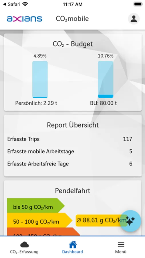 Whether business trip or commute, your employees can continuously calculate their own mobile CO2 footprint and compare it to their personal budget. We place great value on uncomplicated yet informative recording and clear evaluation.