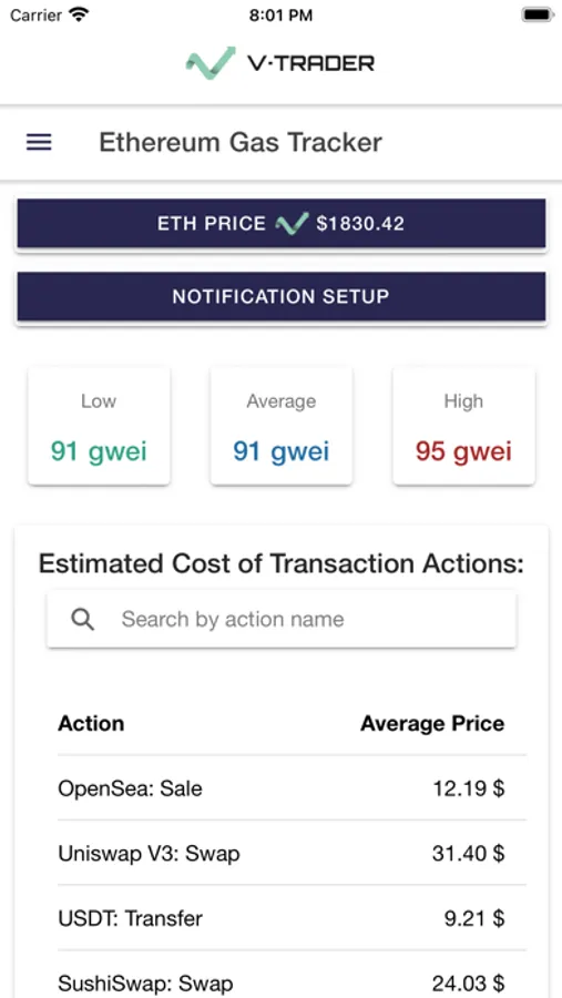 This app provides you with real-time gas prices for Ethereum transactions. Stay informed about the current gas prices and make smarter decisions when it comes to your Ethereum transactions. Whether you're a developer, trader or a new Ethereum user, this app can help you monitor gas prices and optimize your transactions.