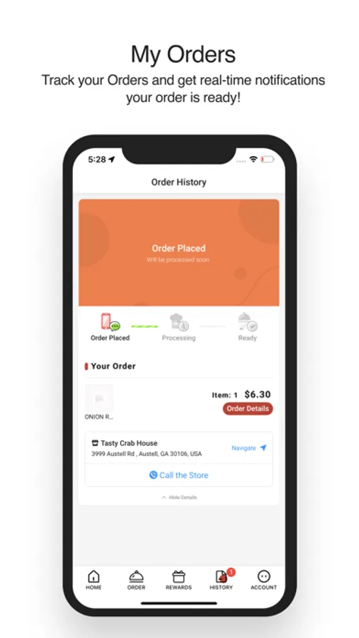 Track your Orders and get real-time notifications your order is ready!