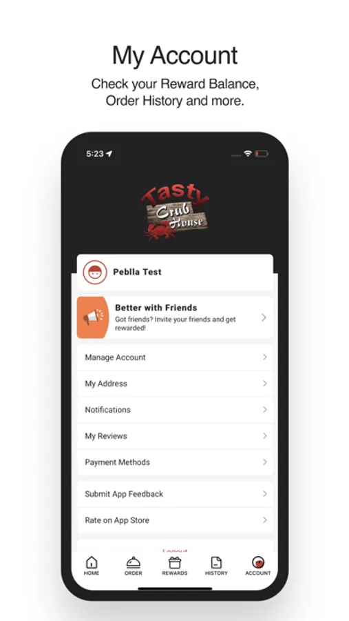 Check your Reward Balance, Order History and more.