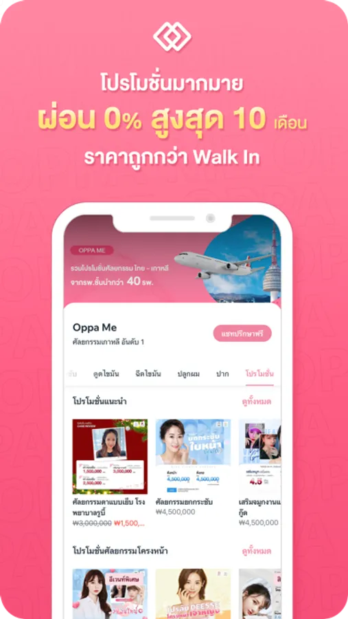 Oppa Me แอพพลิเคชั่นศัลยกรรมเกาหลีชั้นนำ ผ่อน 0% นานสูงสุด 10 เดือน
