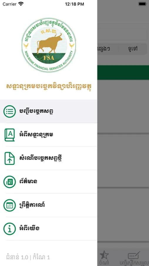 • Get to know US: this feature allows users to know better about FSA, General secretarial of FSA, and FinTech Center including organizational structure, job responsibilities, featured achievements, contact information, social media channels and URLs to non-bank and bank regulators in Cambodia.