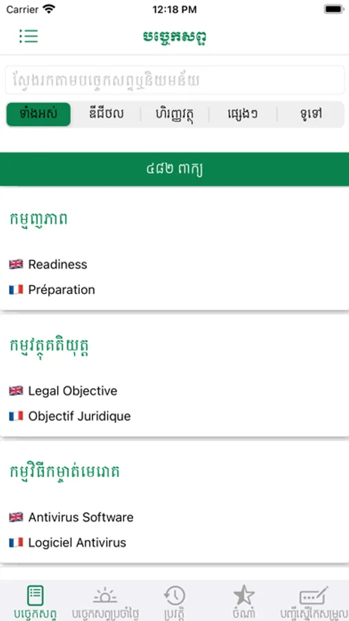 • Terminology: this feature allows users to view term list, term’s definition, search for wanted terms, view bookmarked terms, enjoy daily random term, and make request to update or add new unavailable term.