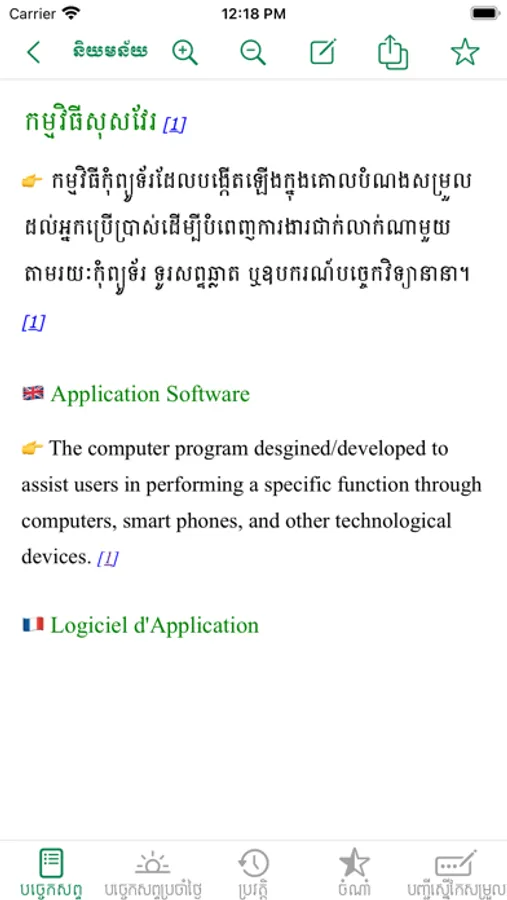 • Get to know FinTech Lexicon: this feature allows users to know how team manage to prepare terminologies and its definitions, app manual, app features, and users can share this Lexicon app on social medias or with friends to take benefits from it; since resource of technical terminology translated in Khmer is limited and scattered in different locations.