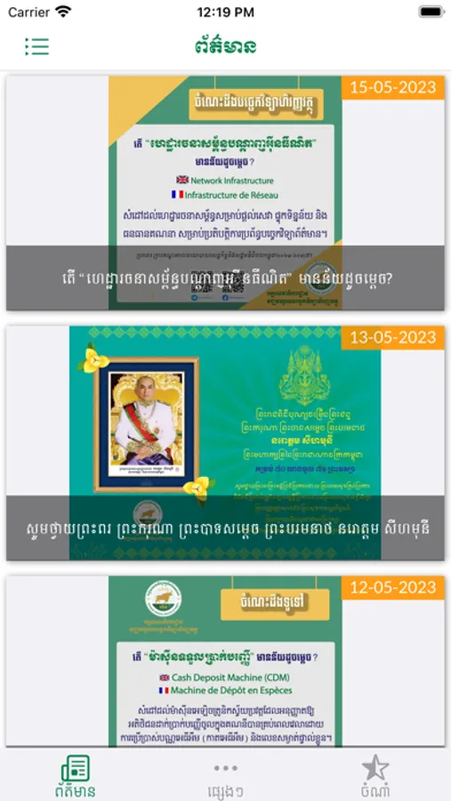 • News and Events: this feature allows users to follow-up with latest Cambodia FinTech news and events posted by FinTech Center. Users can read news and event detail, bookmark wanted news and events to read later, and share news and event on their social media or with friends.