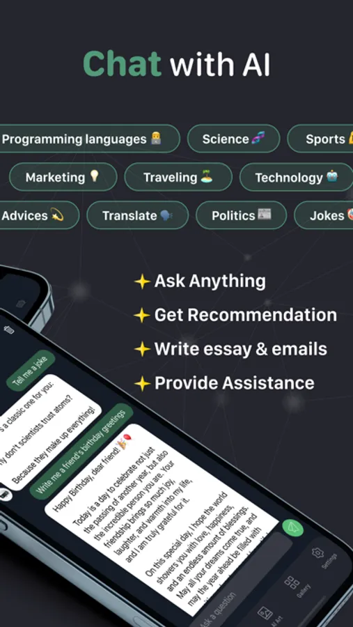 The application is equipped with the most advanced AI technologies, such as GPT-4.