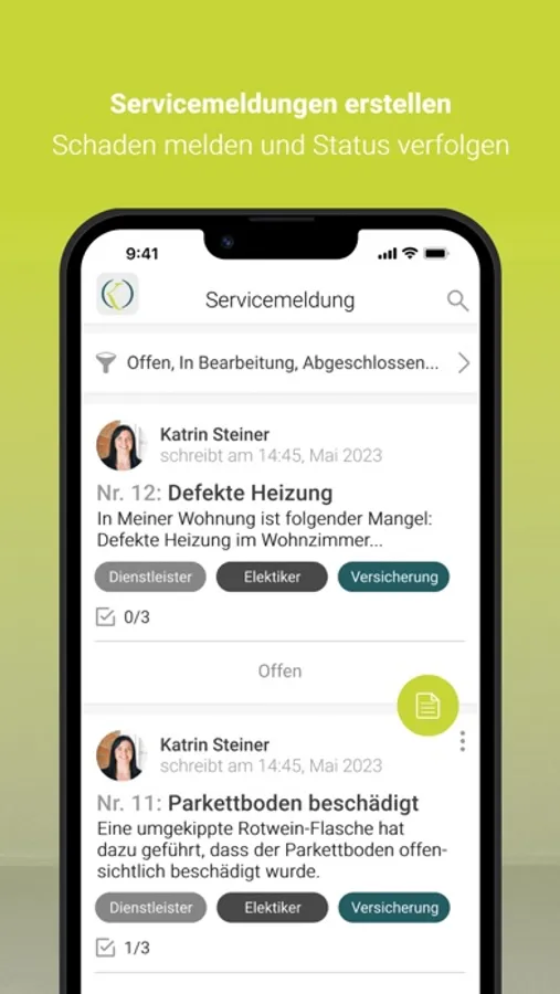 - Interaktiv: Sie können in der O.K. Hausverwaltung App direkt Schadensmeldungen oder andere Anliegen mit Fotos erfassen. Ihr Sachverhalt wird schnell bearbeitet und Sie erhalten regelmäßige Status-Updates per Push-Nachrichten.