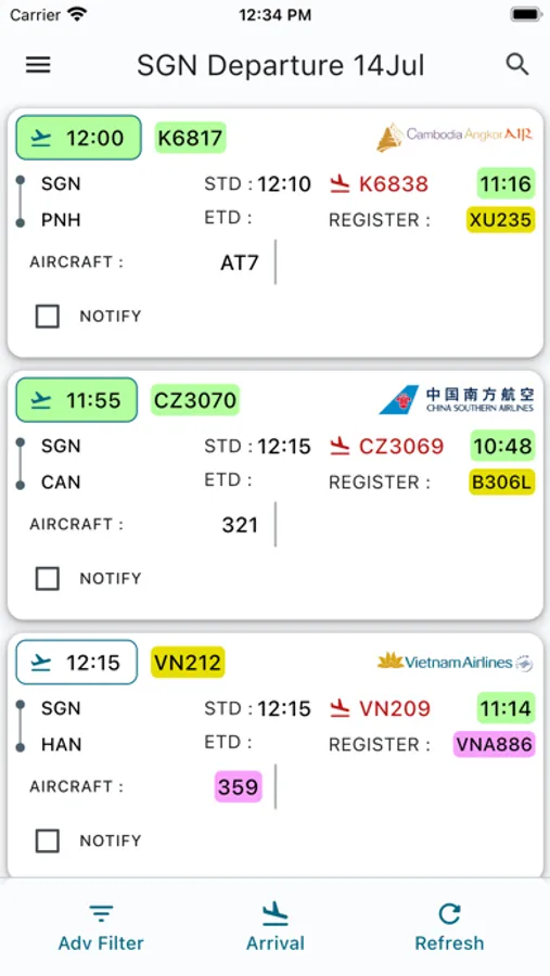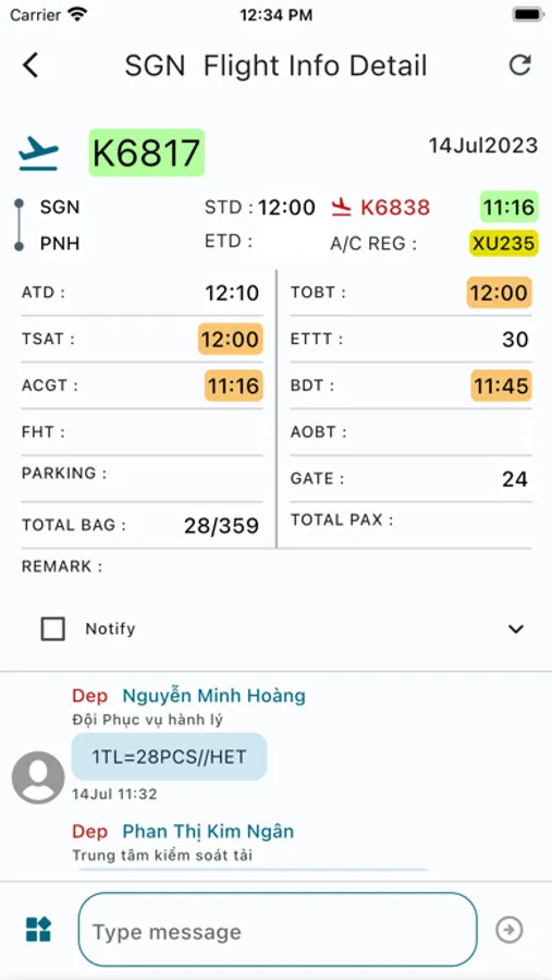 - Đăng ký nhận thông báo khi chuyến bay đổi thông tin.