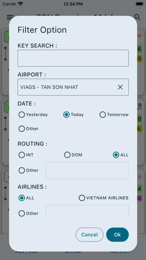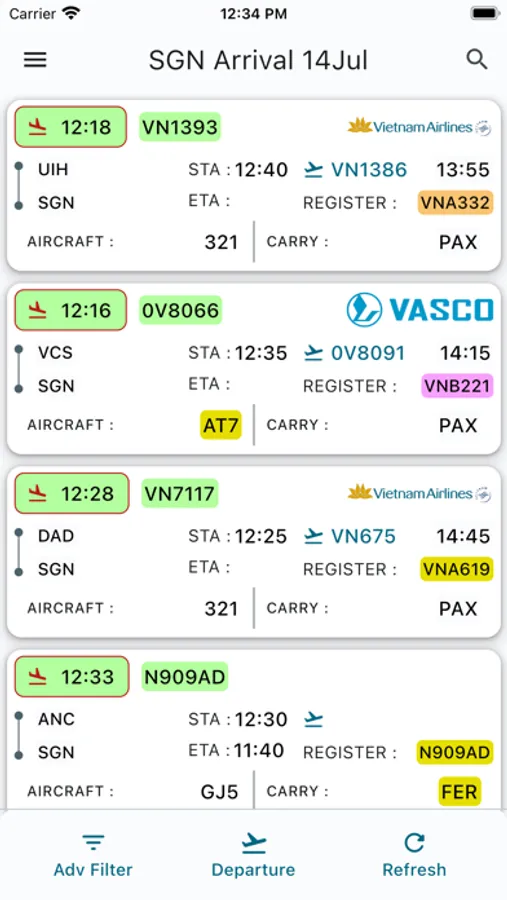 - Xem lịch bay hàng ngày (giờ đi, đến, cửa khởi hành, băng chuyền hành lý)