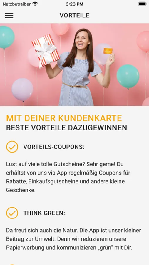 Bling! Bling! Wir schicken Dir Deine persönlichen Vorteile direkt per Push- Nachricht, wie z.B. €-Coupons, Rabatte, Einkaufsvorteile, Give-aways und kleine Geschenke. Deine Gutscheine kannst Du direkt über die App in unserem Haus in Löhne einlösen.