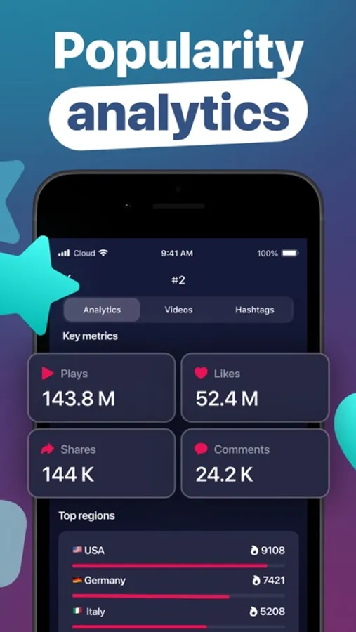 TrendTok helps creators easily track analytics of TickToks followers, likes, fans and helps to grow using chart of the viral trends.