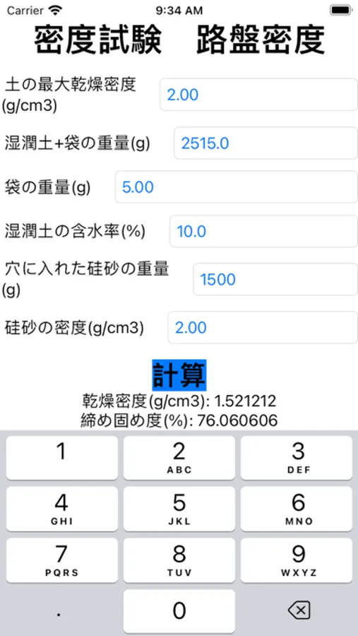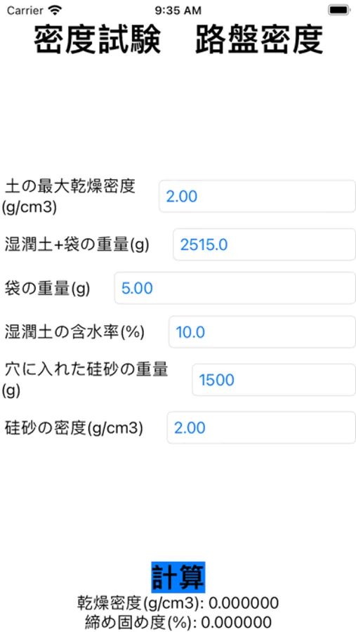 数値を入力して、「計算」ボタンをタップすると計算結果が出ます。