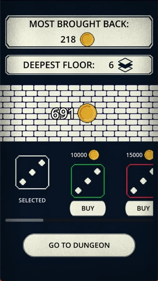 In this game you roll 3 dices and combine their results to increase your chance to find good treasures. The lower your dices score is, the riskier the dungeon room will be... but if you're lucky enough, the riches will be immeasurable.