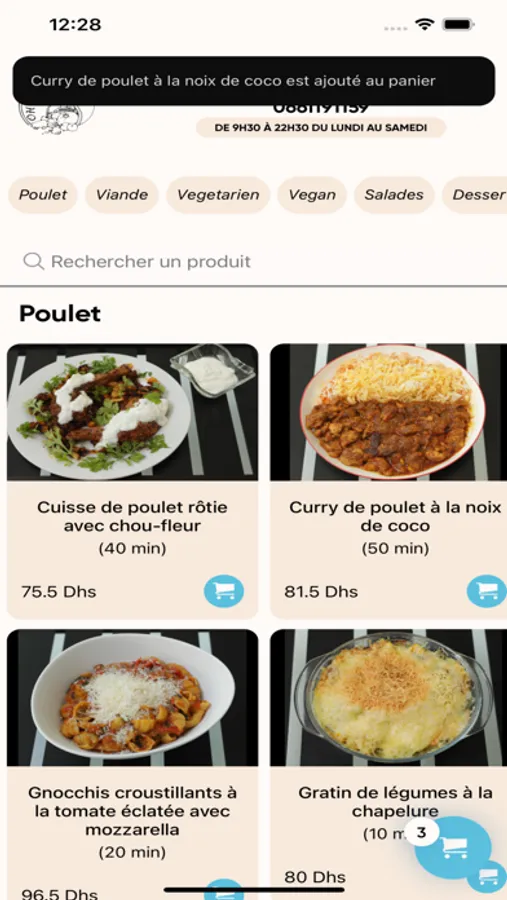 Nous vous garantissons une livraison rapide une hygiène incontournable et un service à la hauteur de vos exigences. Ouvert du lundi au samedi de 9h30 jusqu’à 22h30, ajoutez au panier ce qui vous fera plaisir, allant d’une sélection d’entrées et de plats, jusqu’aux desserts les plus raffinés, tout ceci est conçu et préparé aux petits soins que pour vous satisfaire et vous faire plaisir.
