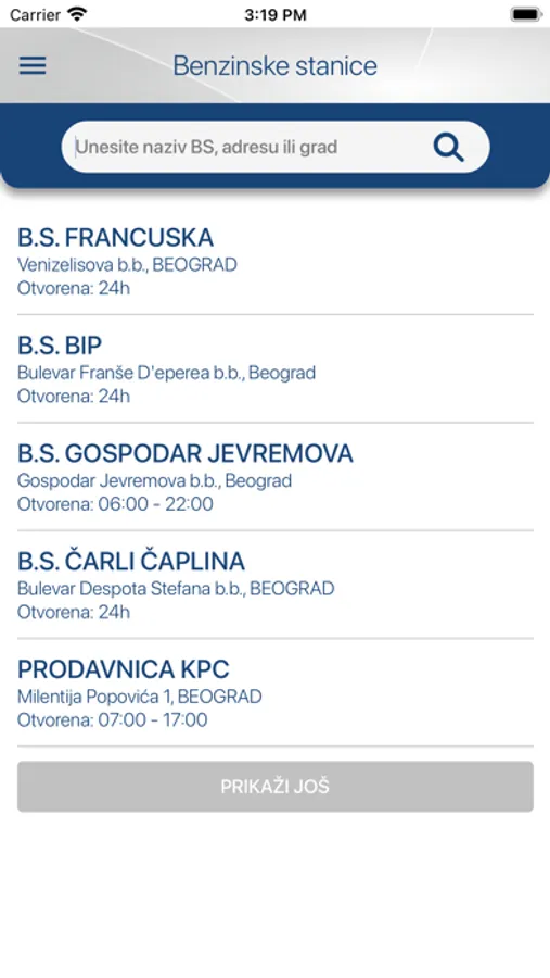 - Prikaz mape NIS Petrol i Gazprom benzinskih stanica u Srbiji;