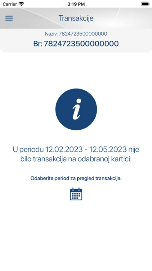 - Pregled svih transakcija uz mogućnost odabira odgovarajućeg perioda u kalendaru;
